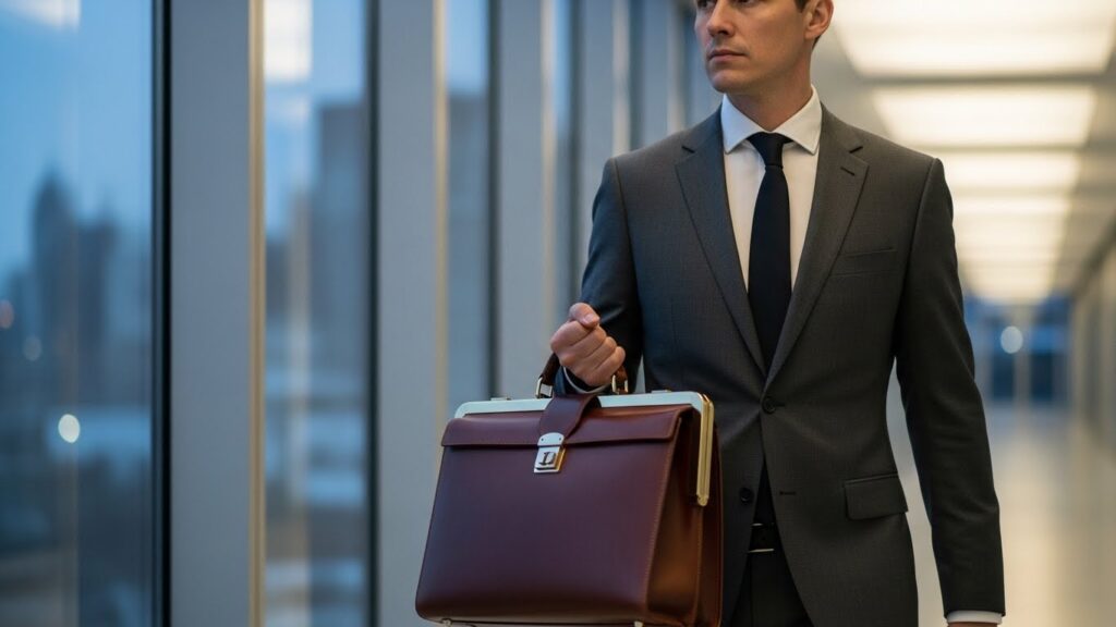 口金フレームで大きく開く、医師バッグに由来するクラシックなビジネスバッグ。