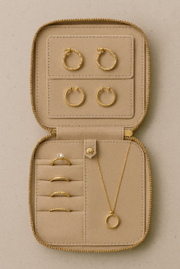 リング・ピアス・ネックレスなど、繊細なアイテムを個別に保護しながら収納できる。