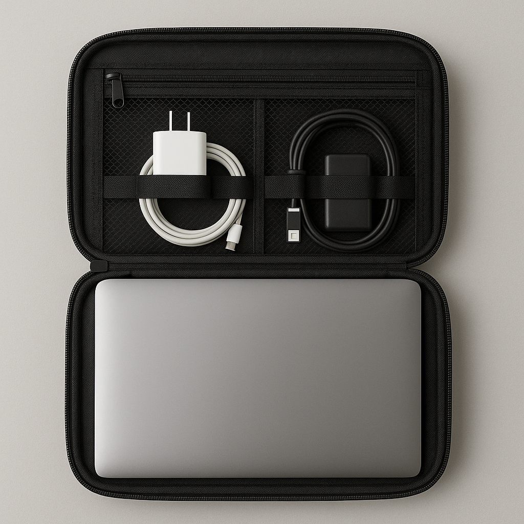 バッグインバッグとしても使える薄型設計。カフェ作業や出張にも便利。