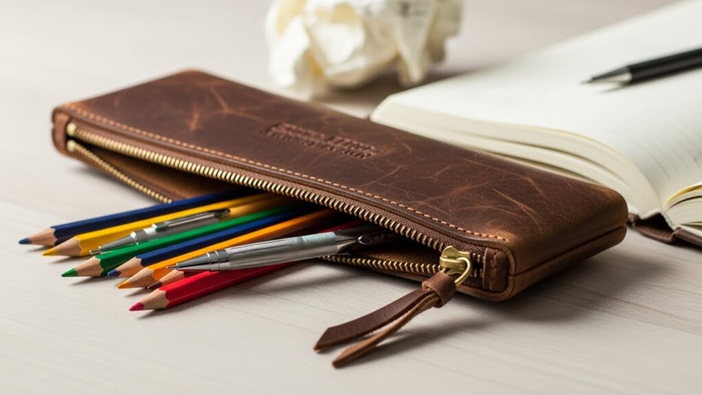 複数のペンや小物を分けて収納でき、デスクでも外出先でも取り出しやすい。