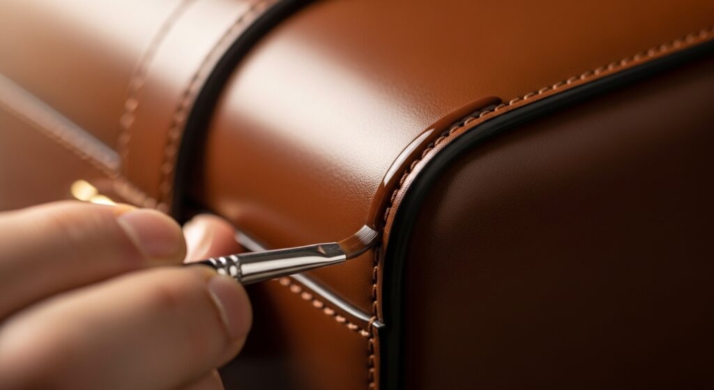 塗膜が革の断面を守り、割れや摩耗を防ぎながら上品な艶を保つ。