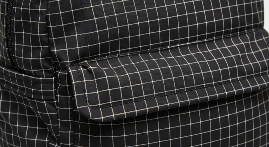 格子状に太い繊維を織り込むことで、破れや裂けを防ぐ軽量ナイロン素材。