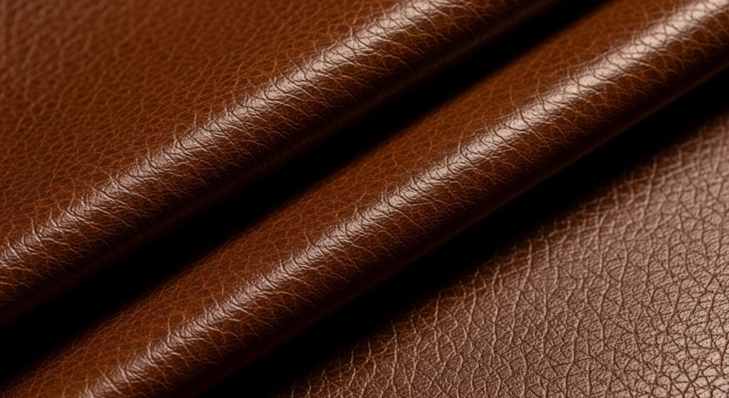 型押しとワックス加工を施した、細かい斜めの筋模様が特徴の牛革。