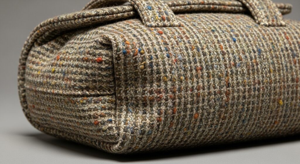 立体感のある織り柄が特徴で、バッグに使うと上品で温かみのある印象になる。