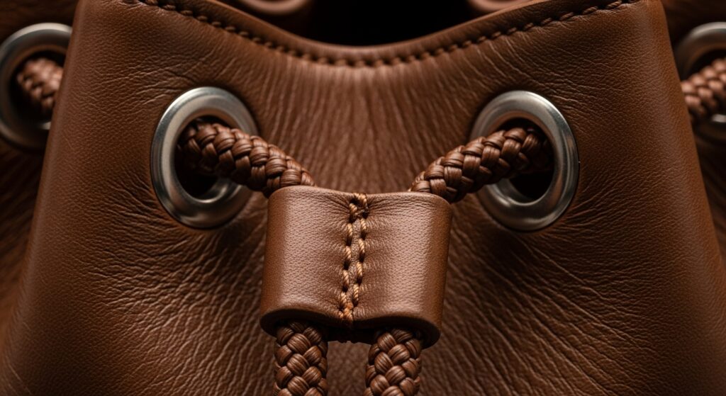 巾着バッグやナップサック、フード付きウェアなどで形状調整やフィット感を高める役割を持つ。