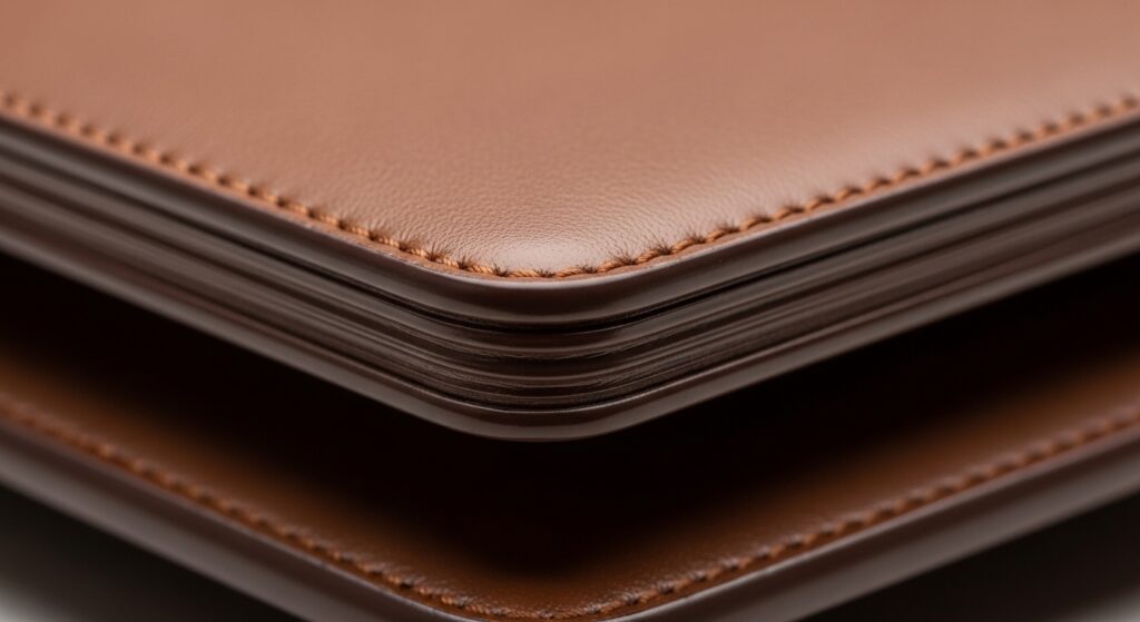 断面を保護することで、革の層が割れたり毛羽立ったりするのを防ぐ。