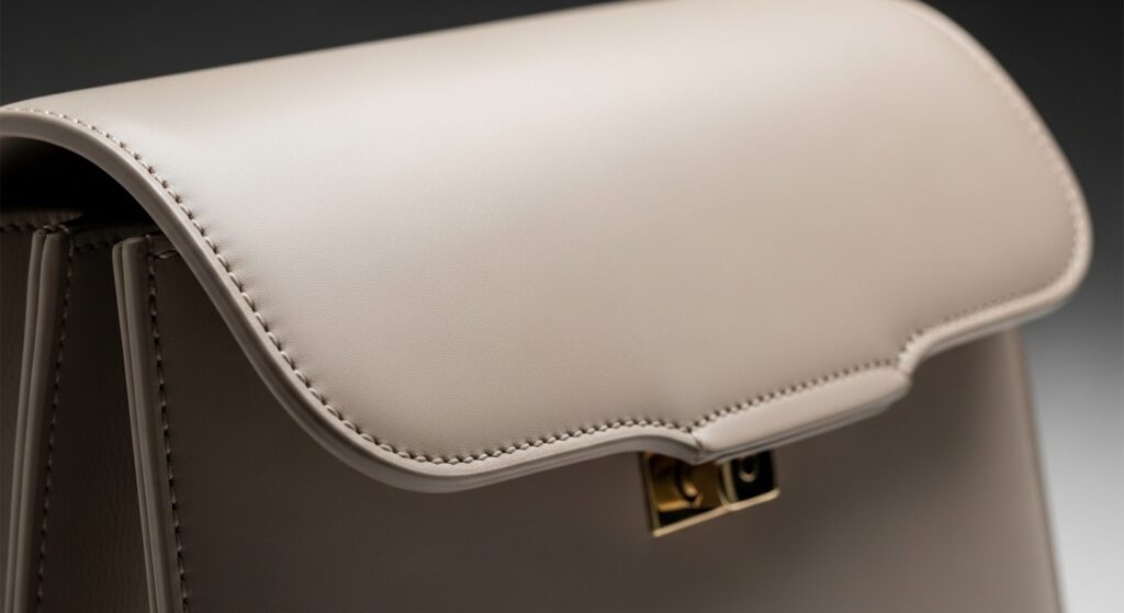 バッグの前面に設けられた蓋状のパーツで、開口部を覆い、収納物を保護する役割を持つ。