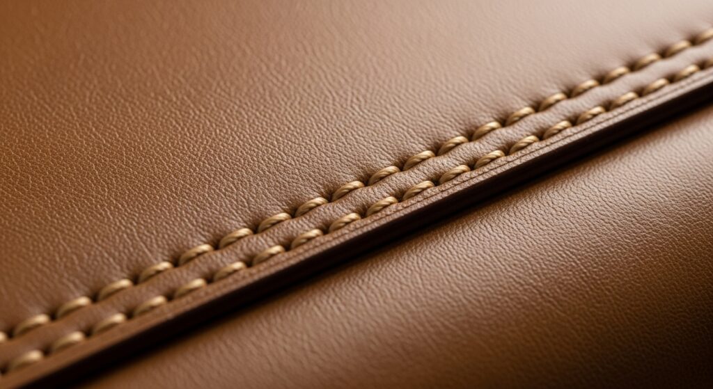 2本の縫い目が視覚的アクセントとなり、高級感やクラフト感を演出。