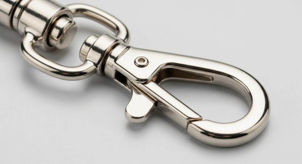 バッグやストラップの端につける金具で、回転するフック状パーツのこと。