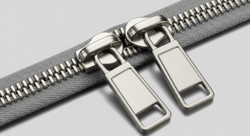 2つのスライダーがついたファスナー。両方向から開閉でき、使い方の自由度が高い仕様。