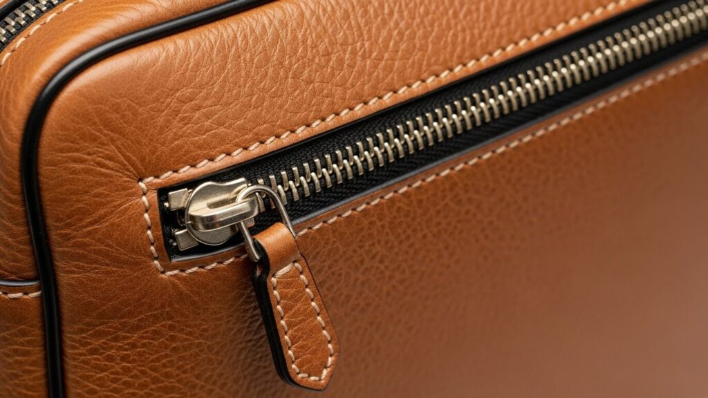開閉にファスナーを使用したポケット。中身がこぼれにくく、貴重品の収納に向いている。